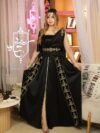 قفطان ريتا ..باللون الأزرق المميز لهذا الموسم …متكون من قفطان داخلي مصنوع من الحرير الإيطالي ومزين بالسفيفة ..مع كاب بقماش الكافيار الفاخر ..مع حزام لتحديد الخصر