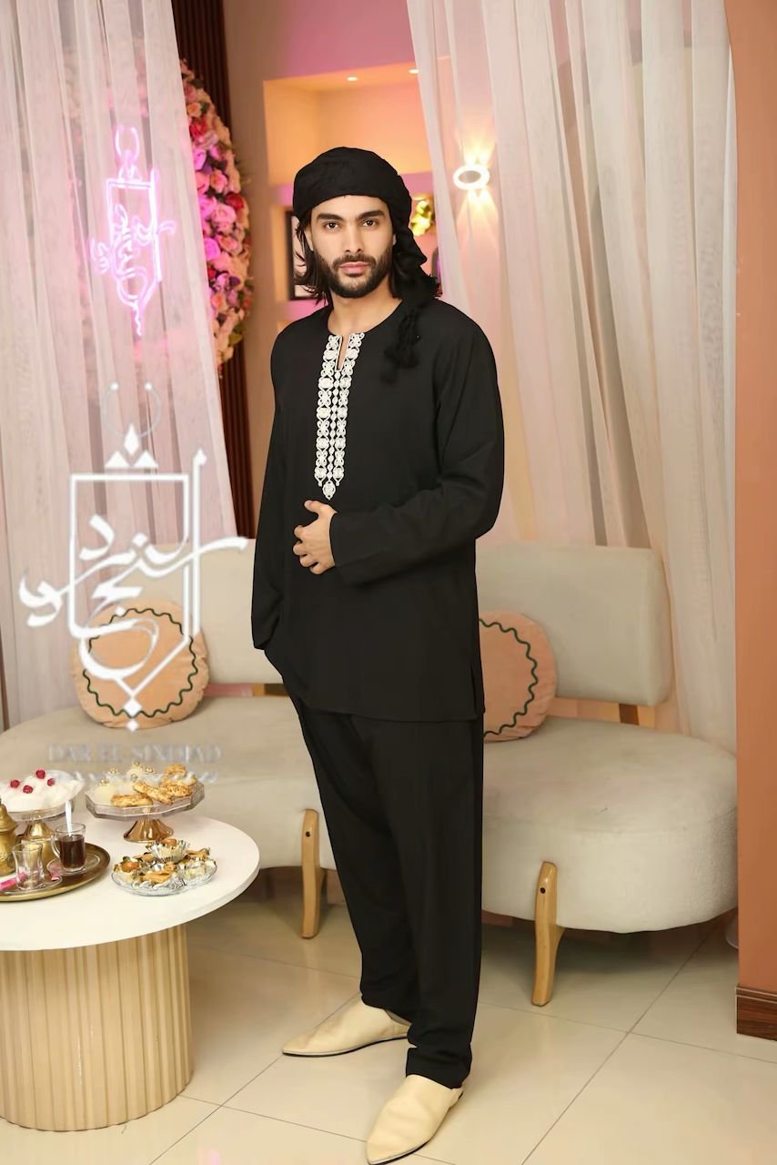 طاقم جود ….بلمسة جزائرية مناسب جدا للخرجات…… مصنوع من قماش مريح وعملي ……مطرز باشكال مستوحاة من التراث الجزائري