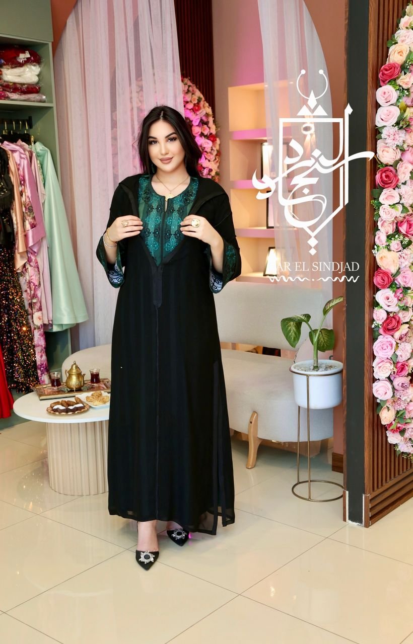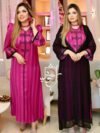 جواهر مجموعة جلابة ..متكونة من قطعتين..قطعة عبارة عن فستان من قماش الجوهرة الفاخر مطرز ومزين بالأحجار…هذا الفستان يمكن إستخدامه وحدة لإستقبال الضيوف يوم العيد وفي المناسبات….والقطعة الثانية عبارة عن جلابة بالموسلين الشفاف ..تلبس فوق الفستان لتعطيه فخامة …ويمكن إسعمالها فوق لباس آخر
