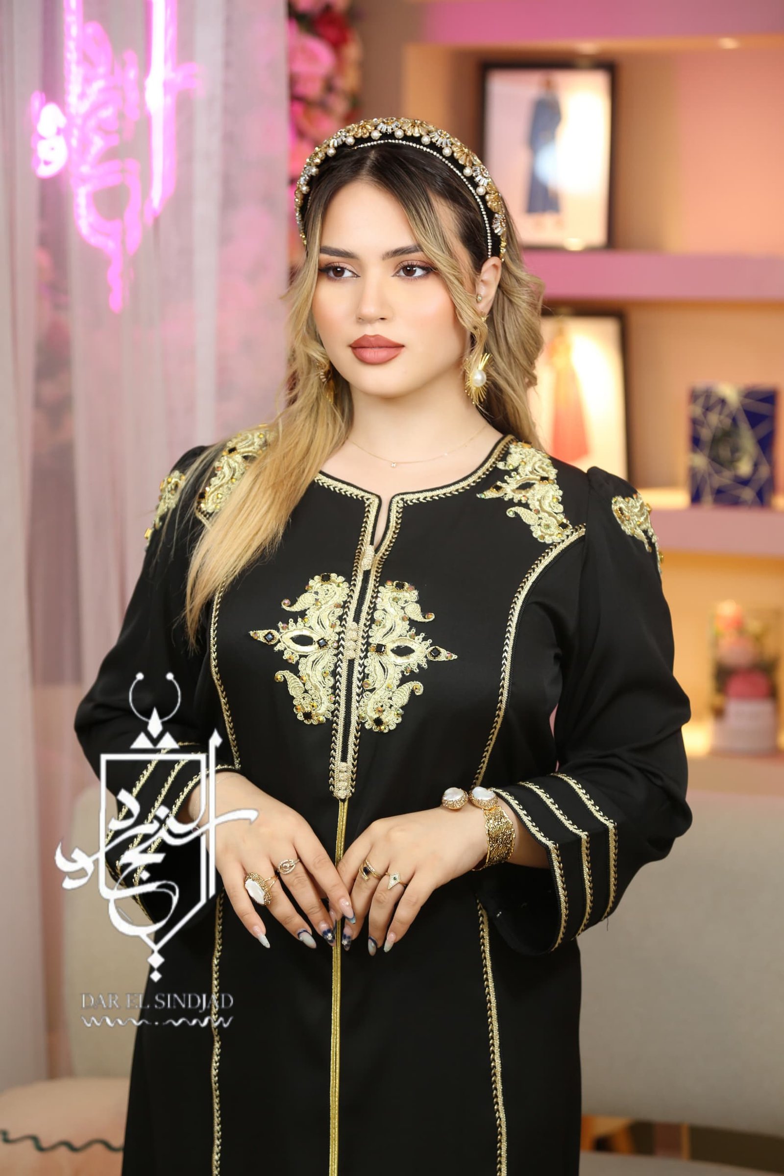 ” قفطان باللون الأسود مزين بالذهبي ليعطي لمسة ملكية وفخمة …عملي ومحتشم ..يليق لكل المناسبات