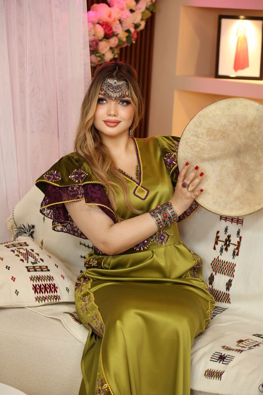 تانيرث” بهذه التحفة …فستان باللمسة الأمازيغية بألوان الموسم وبطرز جد متناسق ..مصنوع بخامات مختلفة (حرير إيطالي ومخمل ودنتال ) متوفر في عدة مقاسات …صممنا فستان للبنات لطلة عائلية مميزة