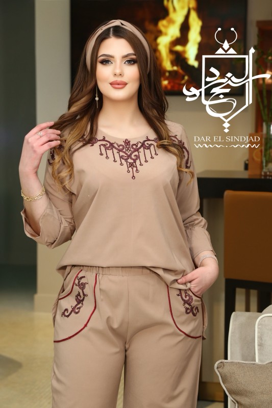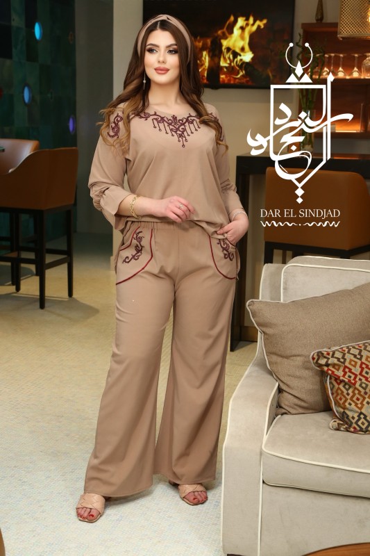 Mohra, the beige set that embodies elegance and simplicity. Carefully made from soft crepe, and embroidered with silk thread that adds a touch of sophistication and beauty. With its calming beige color, it reflects composure and shine. The shirt adorned with precise details, the stylish trousers, and the headpiece that completes the look, all come together to offer you a set that pulses with vitality and allure. Wear “Mohra” and shine with an eye-catching appearance.