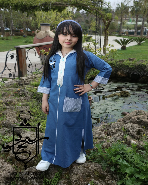 The djellaba is characterized by its modern and innovative design, as it reflects the spirit of femininity and beauty in a distinctive style. The djellaba bears an eye-shaped print, designed with precision and beauty, that adds a charming and mysterious touch to the piece.
